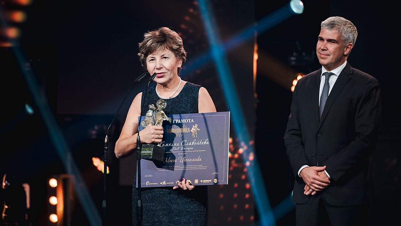 Камелия Славейкова, председател на Съвета на директорите на Shell България, е носител на наградата „Мисис Икономика“ 2024. Престижното бизнес отличие идва като признание за нейното лидерство и цялостен принос за развитието на българската енергетика и икономика. Наградата беше връчена от служебния министър на енергетиката Владимир Малинов, който подчерта подкрепата на г-жа Славейкова за българската енергетика в периода на нейния преход към по-голяма диверсификация и сигурност.