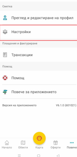 1. От заглавната страница на мобилното приложение Shell, изберете секция "Повече" в долния десен ъгъл, a след това "Настройки"